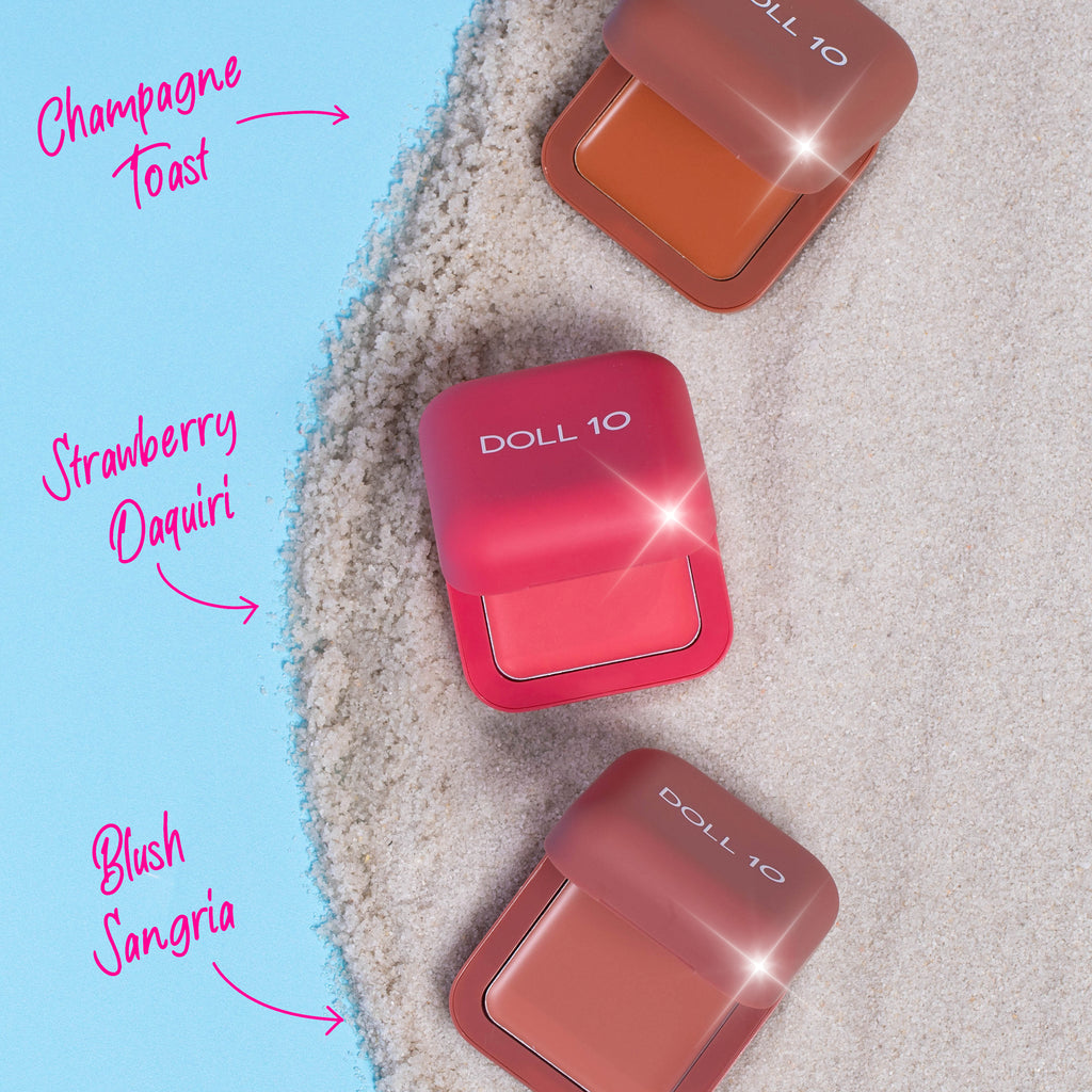 Escape into a world of glow with the Happy Hour Peptide Bounce Blush Collection – a dreamy trio of cream blushes inspired by sun-soaked vacations and effortless relaxation. Each shade delivers a creamy, blendable flush of color that melts into skin like a tropical breeze, giving you that fresh, lit-from-within glow—no passport required.