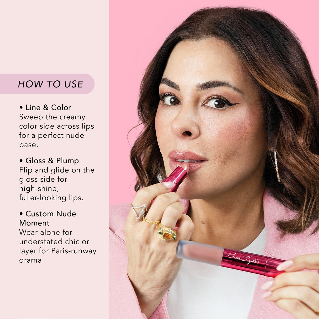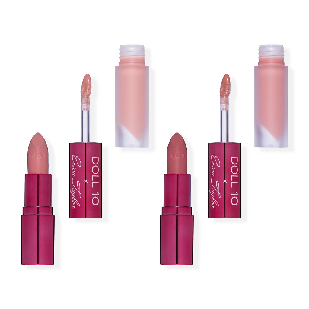 A complete plumping wardrobe for your lips — no needle needed! Our iconic Lip Wardrobe, created in collaboration with Erica Taylor, is better than ever and features perfectly coordinated nude shades to fit all of your lip needs. Each double-ended color and gloss conditions and cares for your lips with our smooth, creamy formula that not only provides gorgeous color, but drenches lips in hydration.