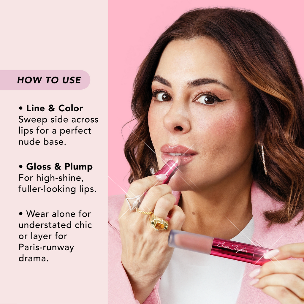 A complete plumping wardrobe for your lips — no needle needed! Our iconic Lip Wardrobe, created in collaboration with Erica Taylor, is better than ever and features perfectly coordinated nude shades to fit all of your lip needs. Each double-ended color and gloss conditions and cares for your lips with our smooth, creamy formula that not only provides gorgeous color, but drenches lips in hydration.
