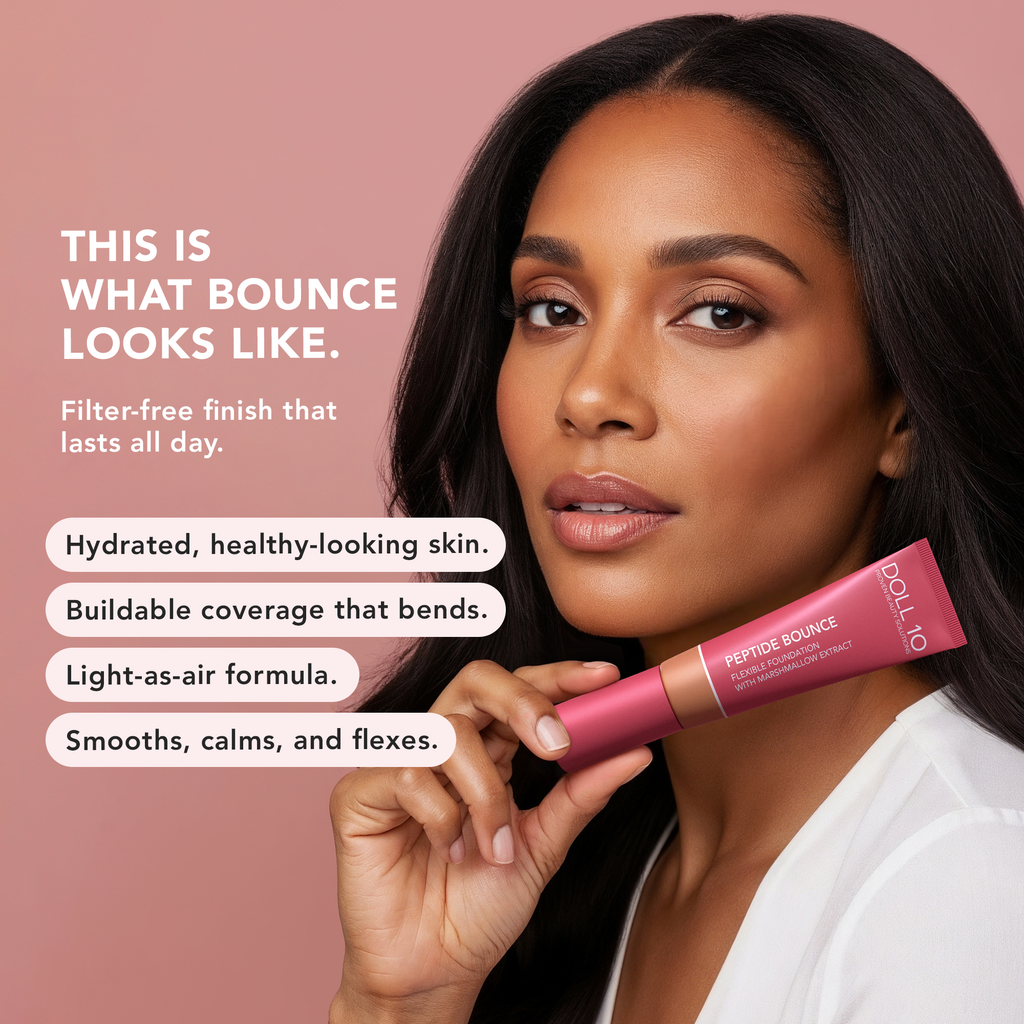 Meet your skin’s new BFF. Peptide Bounce is a weightless, skincare-infused foundation that does more than just cover—it cares. Packed with powerhouse ingredients like Peptides, Marshmallow Extract, Reishi Mushroom, and Vitamins C & E, this fluid foundation hydrates, repairs, and perfects your complexion with a real-skin, airbrushed finish.