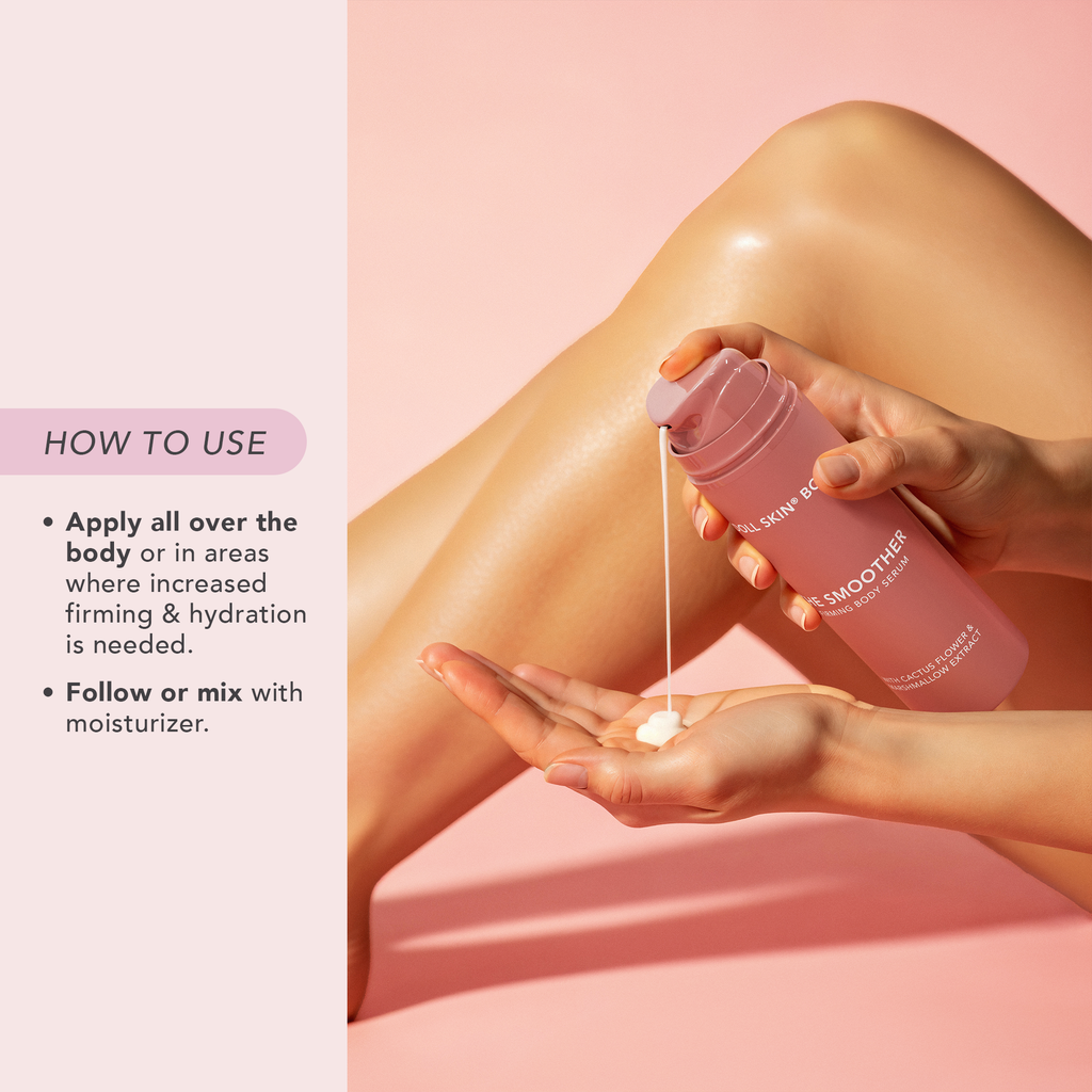 The Smoother Body Serum: Apply all over or target areas needing extra firming & hydration. Use alone or layer with moisturizer.
