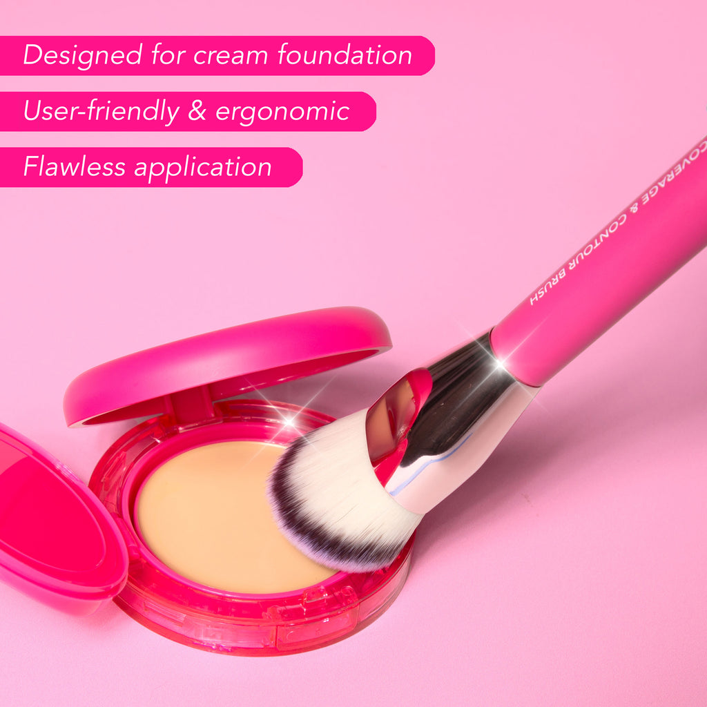 This brush is engineered to provide flawless application of cream foundations. This brush was created to be paired with the Peptide Bounce Balm Foundation. Featuring a pink, fuchsia pink handle that matches the Peptide Bounce Balm component color, this is an ergonomic brush that also assists in providing a flawless finish for a user-friendly application.